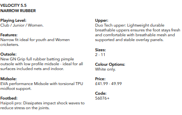 2026 Gray Nicolls Velocity 5.5 Rubber Junior Cricket Shoes