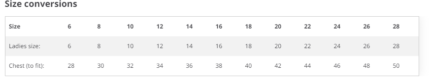 IF YOU HAVE ANY FURTHER QUERIES REGARDING SIZES, PLEASE CONTACT A MEMBER OF STAFF