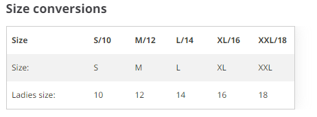 IF YOU HAVE ANY FURTHER QUERIES REGARDING SIZES, PLEASE CONTACT A MEMBER OF STAFF