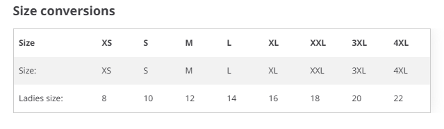 IF YOU HAVE ANY FURTHER QUERIES REGARDING SIZES, PLEASE CONTACT A MEMBER OF STAFF