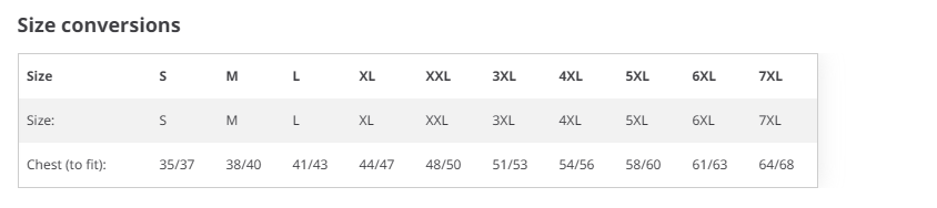 IF YOU HAVE ANY FURTHER QUERIES REGARDING SIZES, PLEASE CONTACT A MEMBER OF STAFF